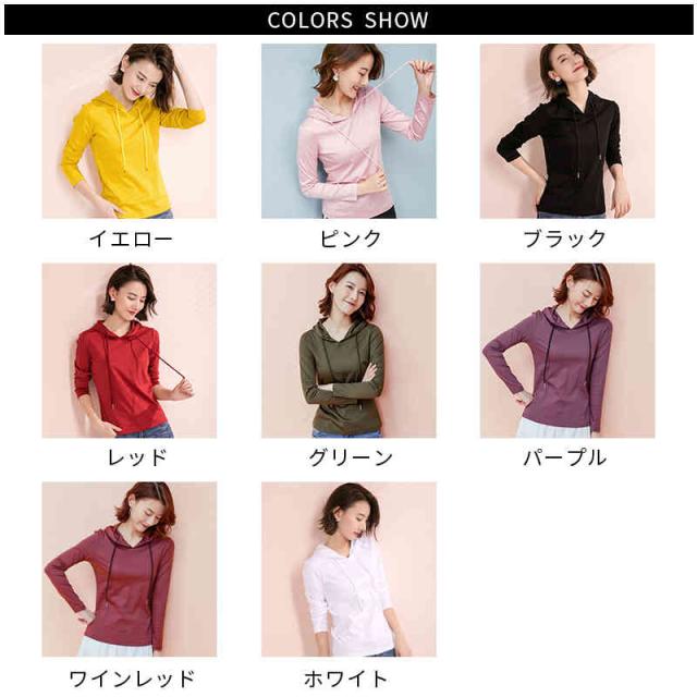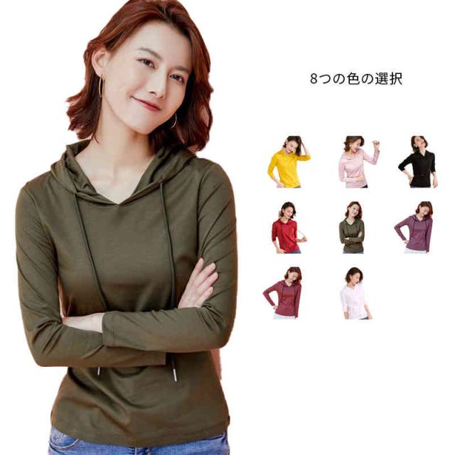 パーカー レディース 春秋 フード付きパーカー プルオーバー 長袖パーカー フード付き tシャツ 長袖 カットソー トップス インナーウエア シンプル 大人 無地 トレーナー 大きいサイズ おしゃれ 送料無料