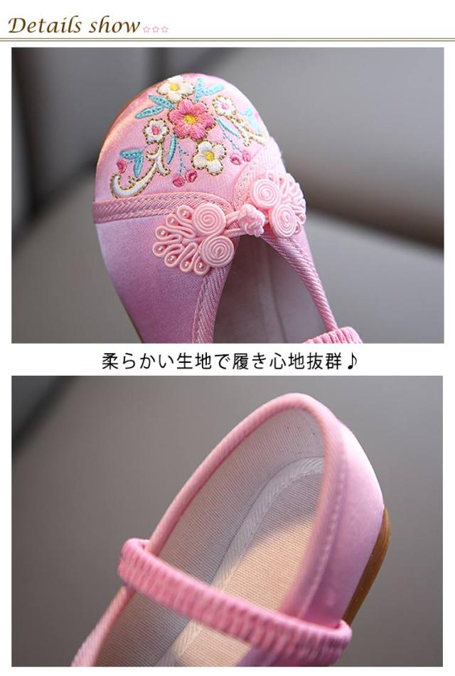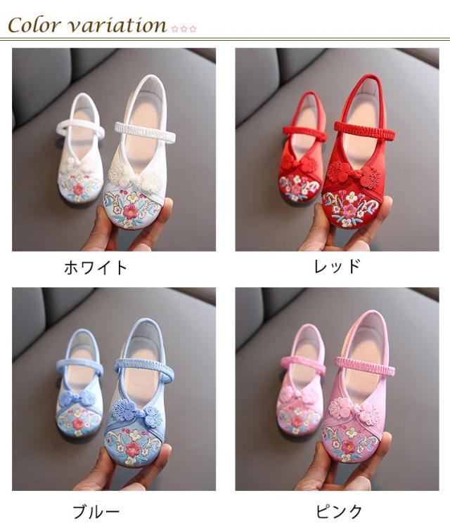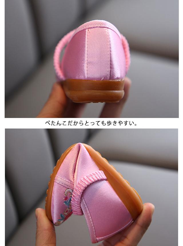 | 花が刺繍された可愛い七五三の靴です。 ゴムの甲ベルトも付いているのですぽっと脱げてしまうこともありません。 ぺたんこだからとっても歩きやすい。 柔らかい生地で履き心地抜群♪ | |