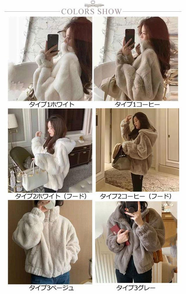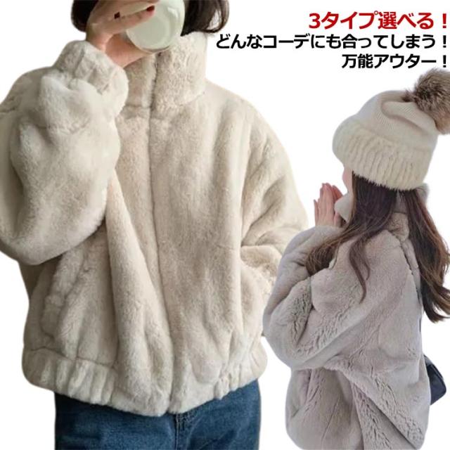 3タイプ選べる ファーコート レディース エコファー フェイクファー コート 毛皮コート 秋冬 ふわふわ モコモコ 防寒 アウター 軽量 防風 暖かい 厚手 ボアブルゾン 韓国風 フード付き ショート丈 長袖 ジャケット きれいめ カジュアル S-XL