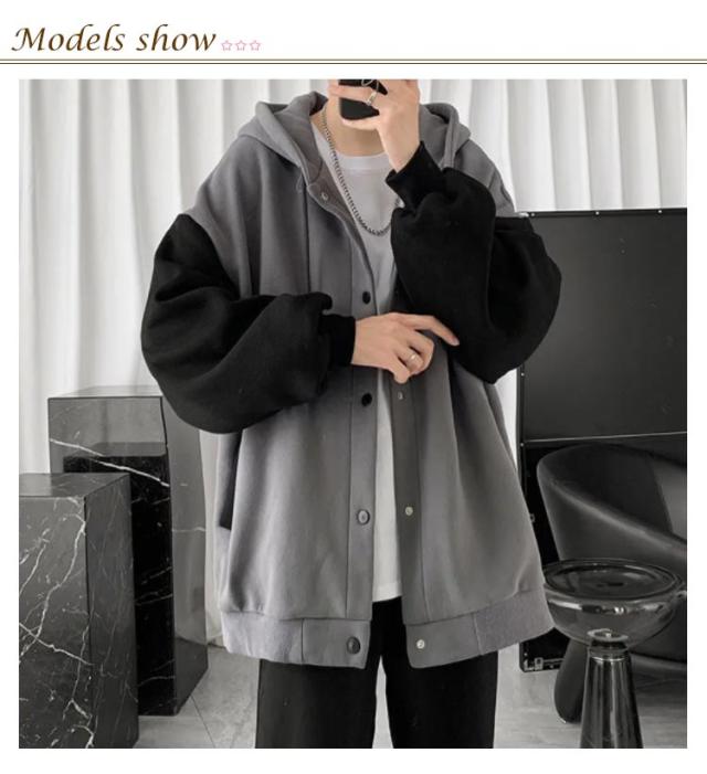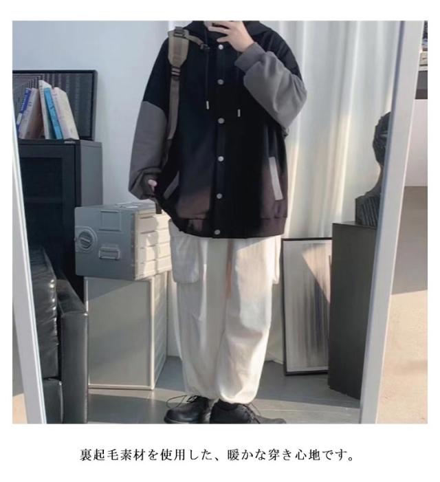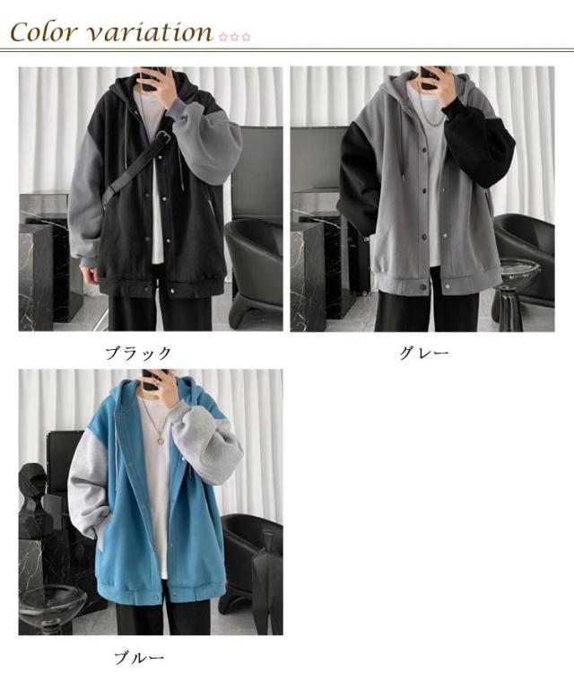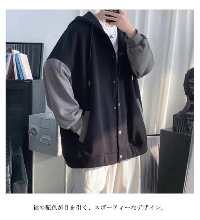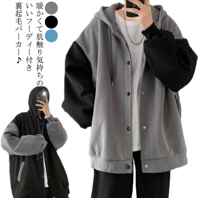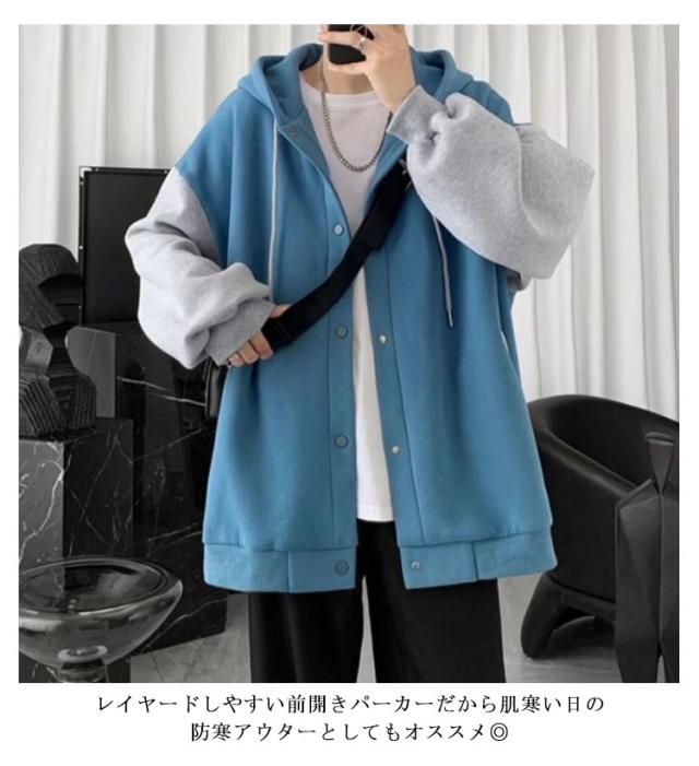 裏起毛 パーカー メンズ スウェット 前開き ボタン パーカー 秋 冬 裏起毛 ジャケット あったか 暖かい シンプル 無地 スエット パーカー 長袖 フード付きパーカー フーディー 防寒 保温 オーバーサイズ おしゃれ 配色 羽織 ポケットあり 送料無料
