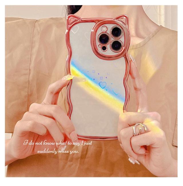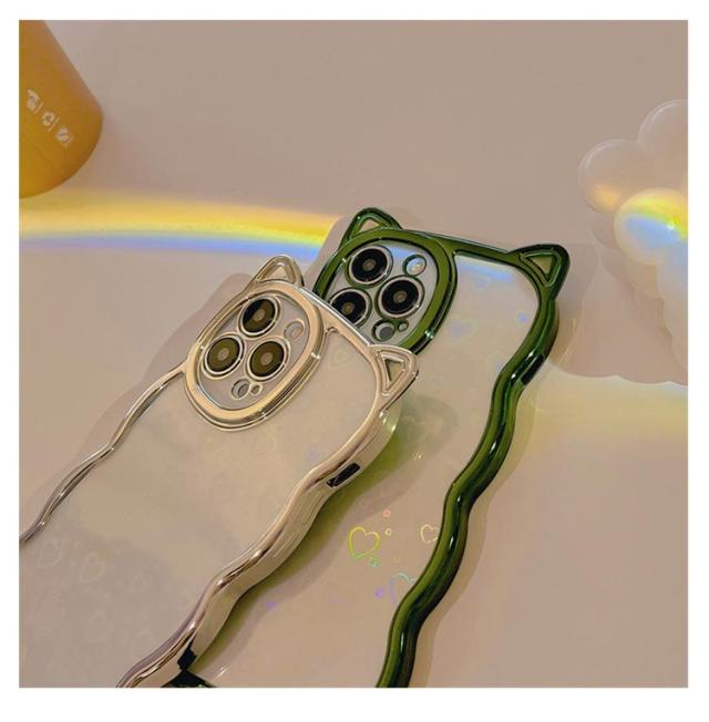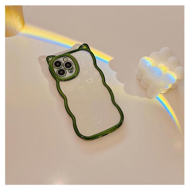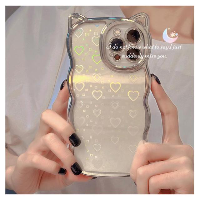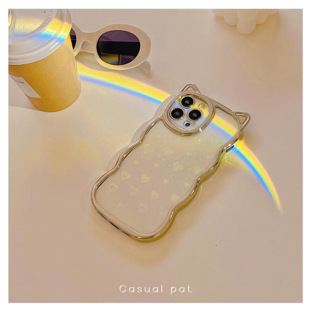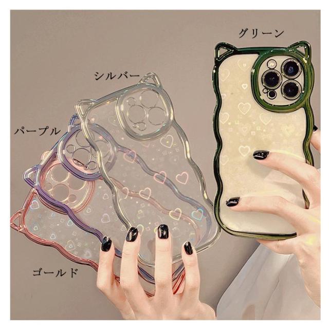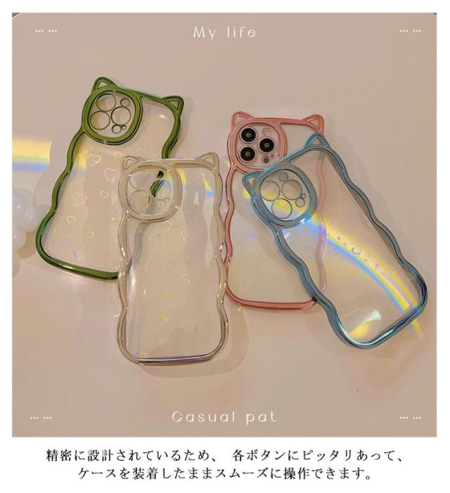 | ハート&細かいグリッターが傾けるたびキラキラ光るiphoneケースです。 もくもくしたウェーブラインに猫耳デザインがなんとも可愛い! 柔らかいシリコン製で手に馴染む触り心地がよいです。 精密に設計されているため、 各ボタンにピッタリあって、ケースを装着したままスムーズに操作できます。 持っているだけでハッピーな気分になれる、 これからの季節にもぴったりのアイテムです。 | |