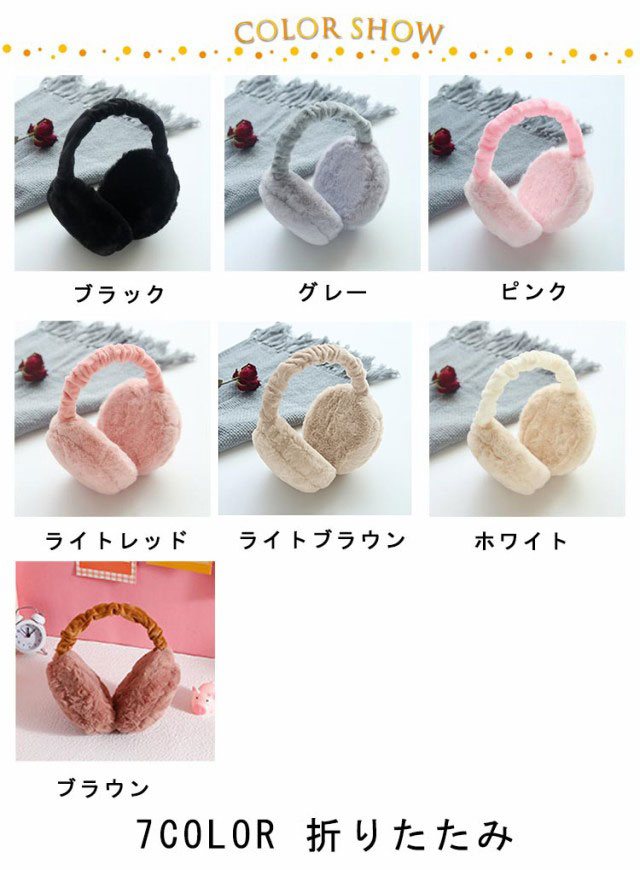 | 7color 折りたたみ ポリエステル、ラビットファー真似の材質で、皮膚に優しくて、ふわふわで、肌触りが気持ち良いです。 アーム部分の長さは調整可能なので、頭の頂部或は後部にも掛けられます。 軽量、折り畳み可能、ポータブルで、毎日の使用に適しています。 | |