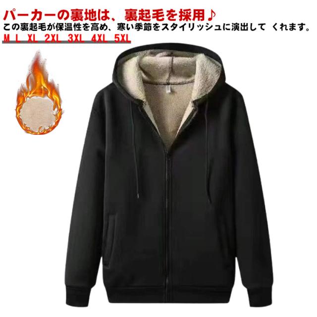 裏起毛 パーカー メンズ レディース 無地 ジップ 大きいサイズ 厚手 裏ボア 裏フリース ゆったり おしゃれ ブラック アウター スウェット 黒 グレー 送料無料