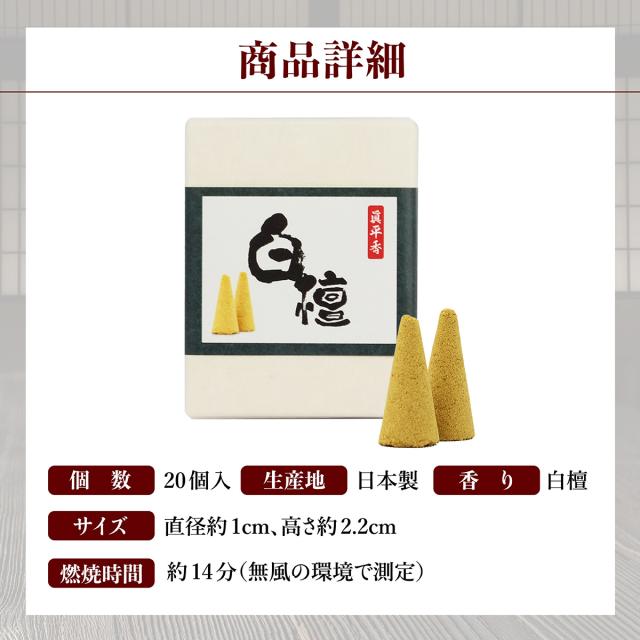 日本製 白檀 コーン 線香 20個 コーン型 コーンタイプ お香 インセンス アロマ香 三角香 天然 サンダルウッド おしゃれ 白檀の香り