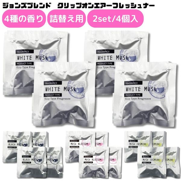 ジョンズブレンド クリップオン エアーフレッシュナー 2セット4個入 詰め替え 車用 芳香剤 カーフレグランス 車 アロマ クリップ型 OA-JON-33