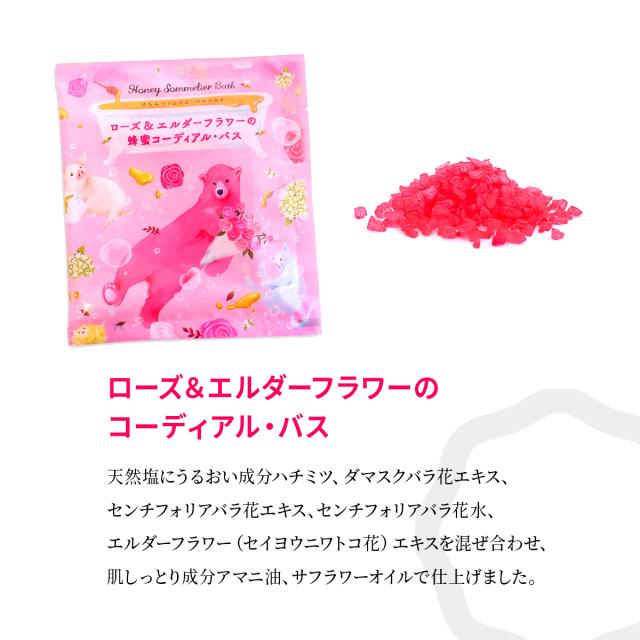 薔薇とエルダーフラワーとはちみつのバスソルトです。