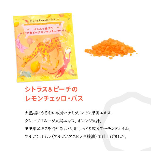 シトラスとピーチ、はちみつベースのバスソルトです。