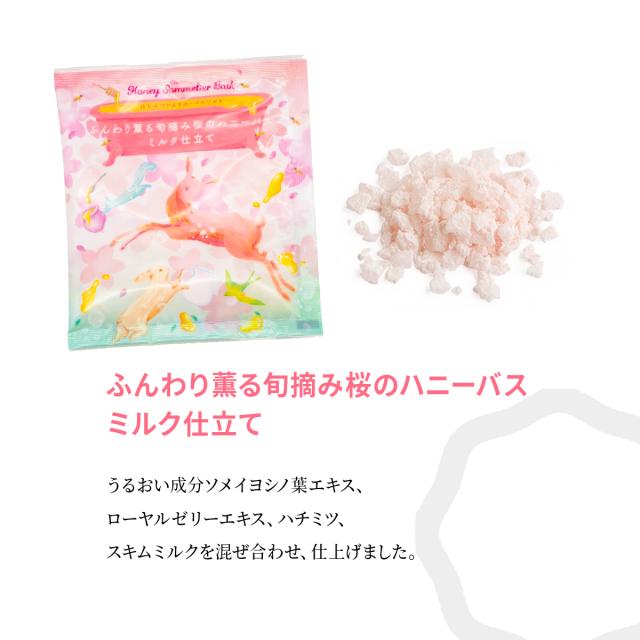 桜とミルク、蜂蜜の王道仕立てのバスソルトです。