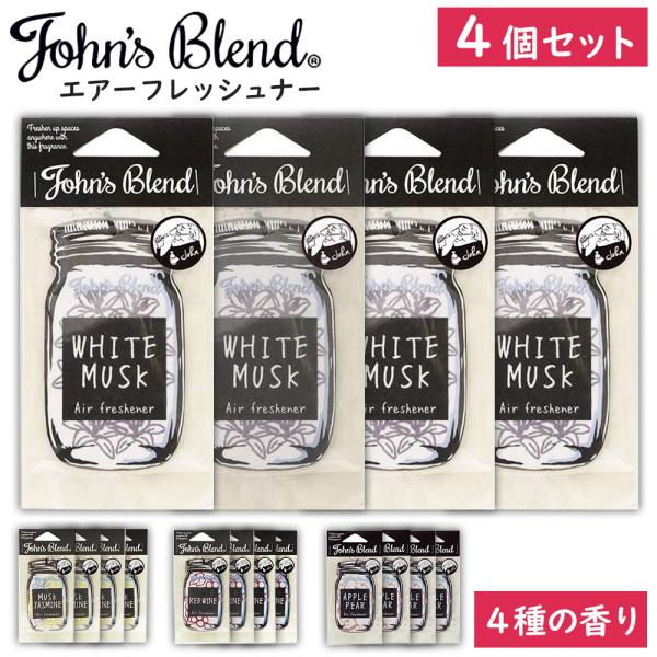 ジョンズブレンド エアーフレッシュナー 4枚 ペーパー 吊り下げ 車 ホワイトムスク ジャスミン アップルペアー レッドワイン