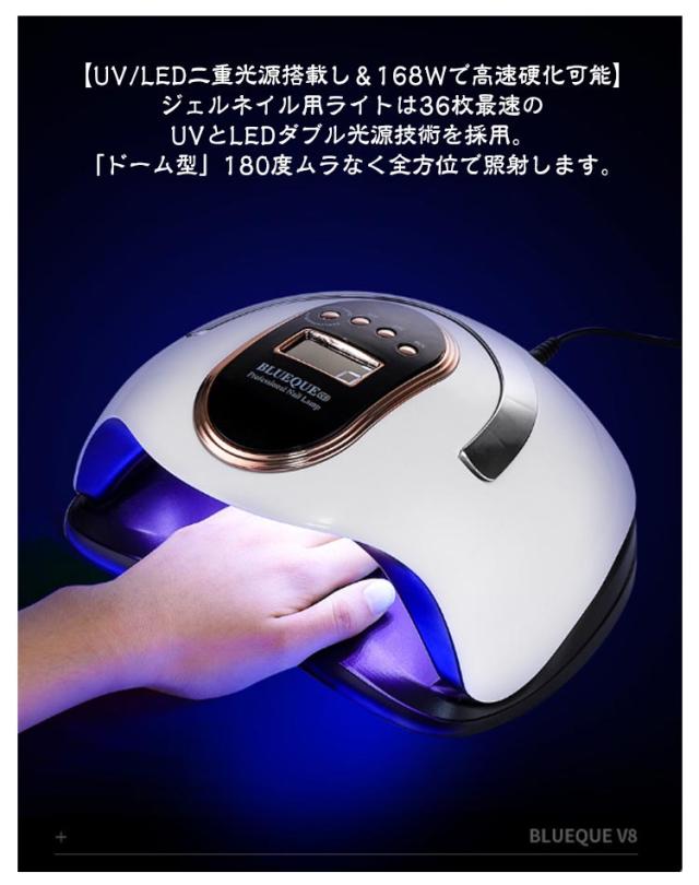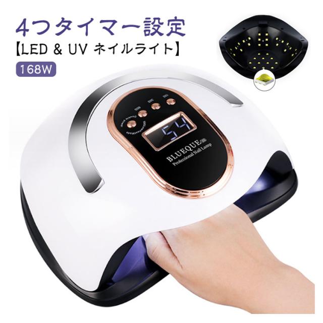 ネイル ライト ジェルネイル LED UV ネイルライト ジェルネイルライト 168W 自動点灯 人感センサー付き ネイルドライヤー UVライト LEDランプ ledライト タイマー付き 低ヒート 硬化用 レジン