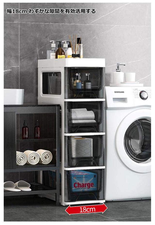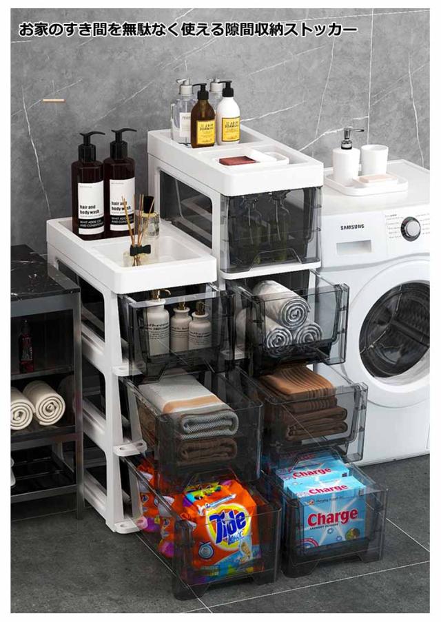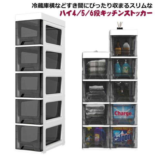 | 冷蔵庫横などすき間にぴったり収まるスリムなハイ4/5/6段キッチンストッカー。 ちょっとしたすき間の奥まで使える引出し式キッチンラック、保存容器やレトルト食品・缶詰や紅茶などのストック、キッチン小物の収納に最適です。 中身が見えないタイプがあり、リビングなどに置いて、ごちゃごちゃになりがちのおもちゃや小物を収納して、お部屋の中がスッキリおしゃれに。 中身が見えるタイプも展開、キッチンや洗面所などに置いて、使いたいものがすぐに見つかることができるからもの探しの時間短縮に。 引き出しにはストッパーがついているので勢いよく引き出しても抜け落ちず安心です。 キッチン、リビング、浴室、トイレ、洗面台横、洗濯機横、子供部屋、玄関など場所を選ばないおしゃれなスリム収納棚です。 トップには仕切り付きトレーになって、頻繁に使う調味料、洗剤、アロマなど置くのに便利です。 | |