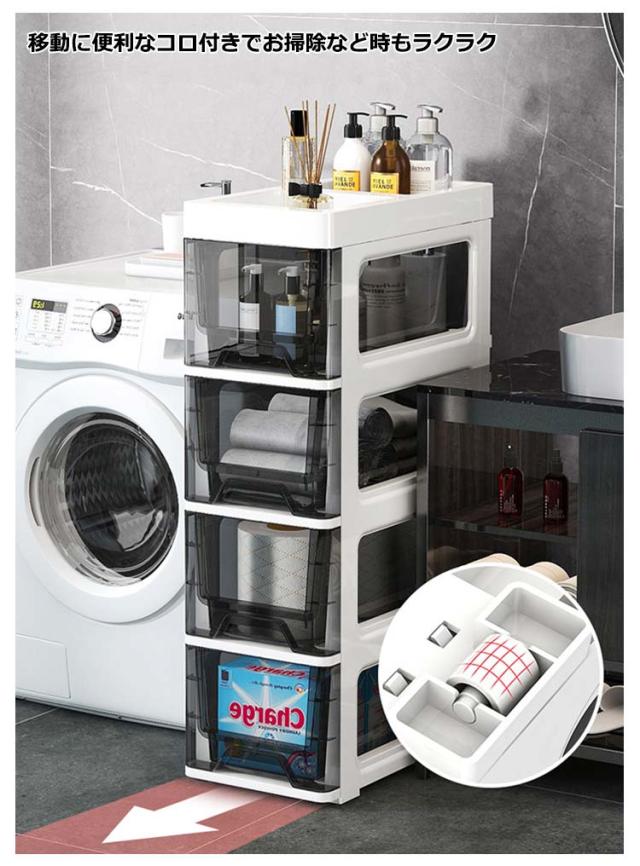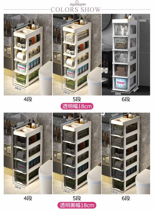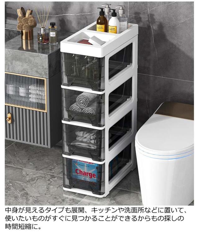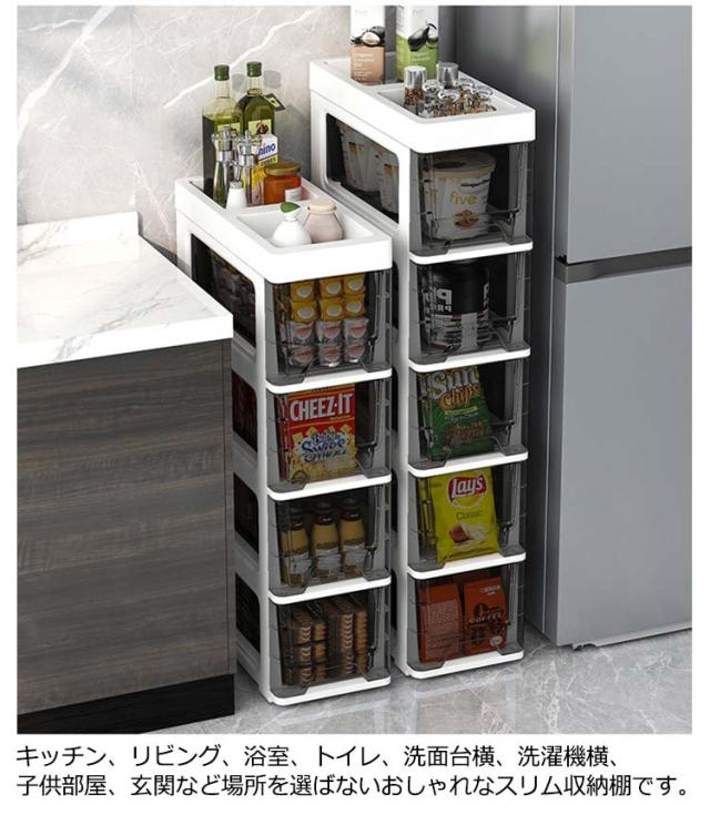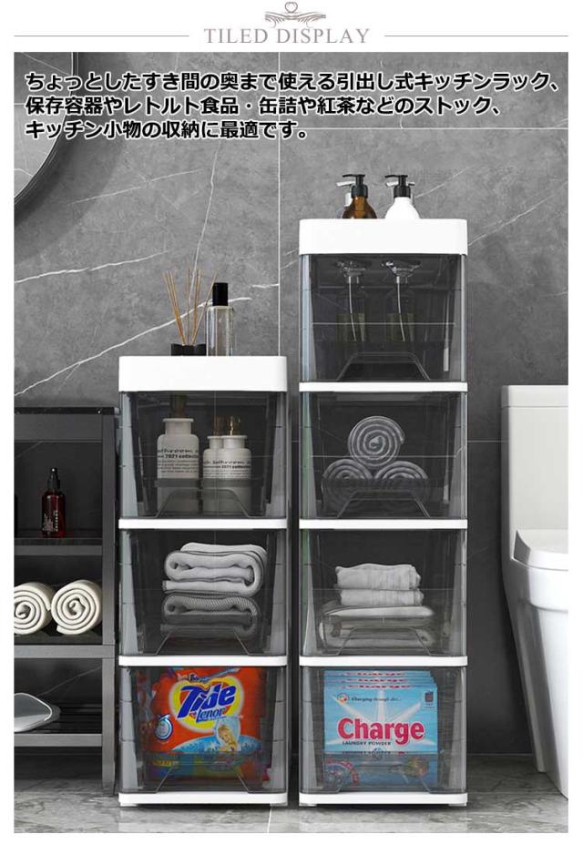 幅18cm すきま収納 スリムストッカー 4段 5段 6段 冷蔵庫横 キッチンストッカー キッチンラック ワゴン 洗面所 スリム 透明 クリア ストレージ キッチン収納 ワゴン キャスター 隙間収納 すき間 ラック 引き出し 棚 食品庫 ストック収納