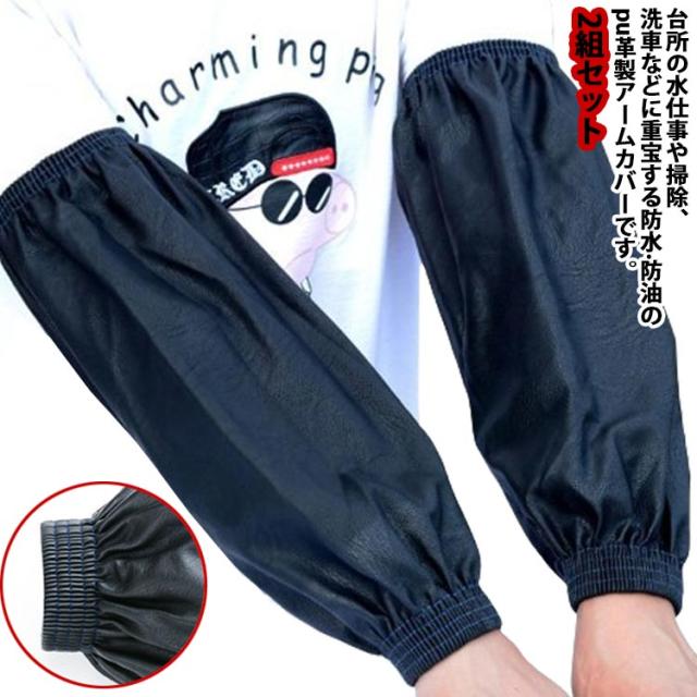 2組セット PU革 アームカバー 家事 防水 撥水 防油 作業用 カフスリブ付き 手首リブ付き 腕カバー 袖カバー 汚れを防ぐ 農作業 園芸 水仕事 ガーデニング 釣り アウトドア 無地 シンプル 男性 女性 そで口カバー ロング 春夏秋冬 黒 ブラック 【送無】