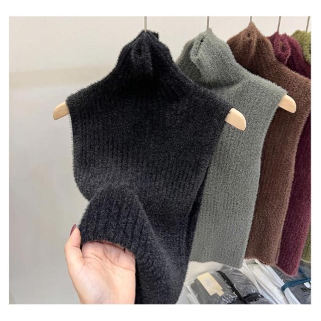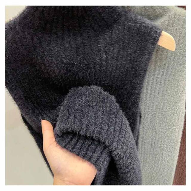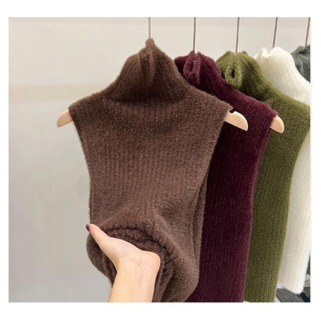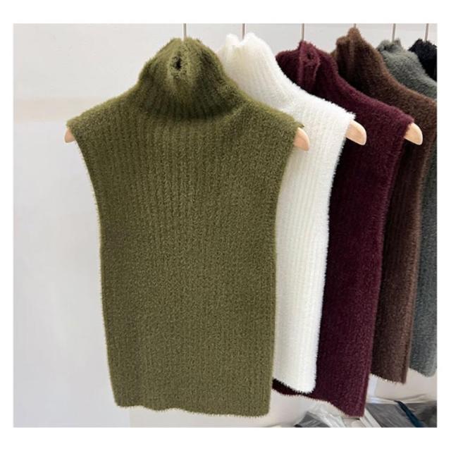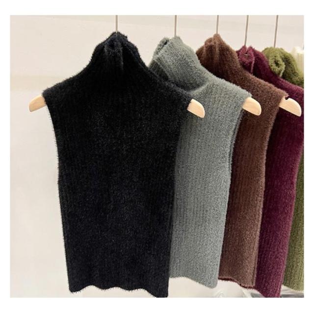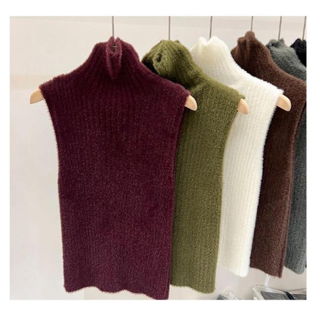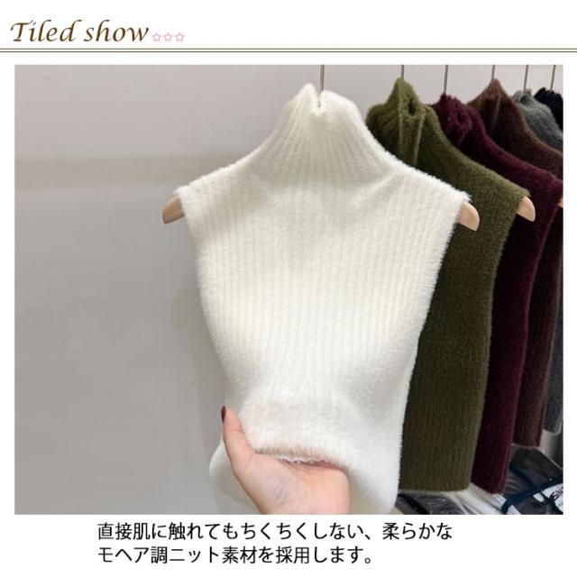 シャギーニット ハイネック ノースリーブ ニット トップス モヘアタッチ ニットタンクトップ モヘアニット タートルネック もこもこ かわいい