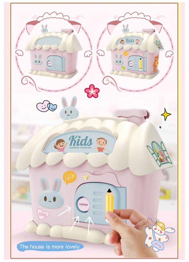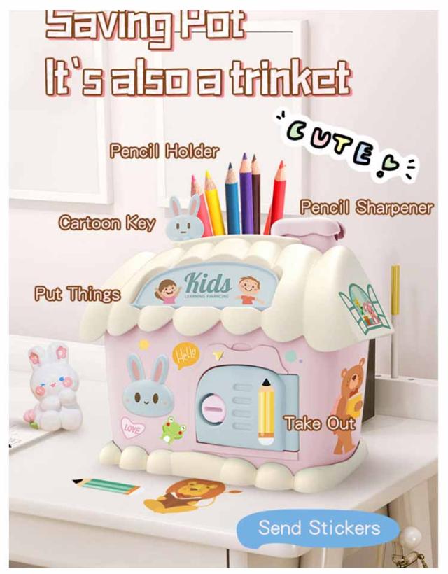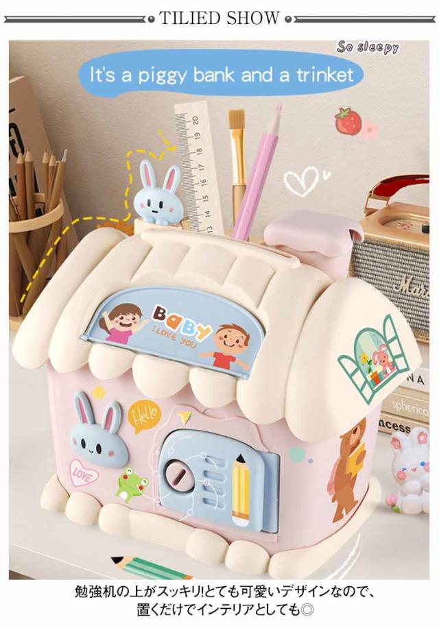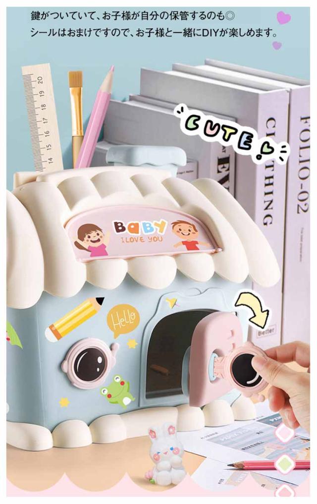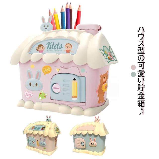 貯金箱 鍵付き 可愛い お札 500円玉 ハウス型 紙幣 DIYプレゼント ペン立て ペンスタンド 多機能 銭投入ボックス 鉛筆削り付き 文房具 可愛い 女の子 男の子 誕生日プレゼント ギフト 雑貨 合格祝い 入園祝い 入学祝い 進学祝