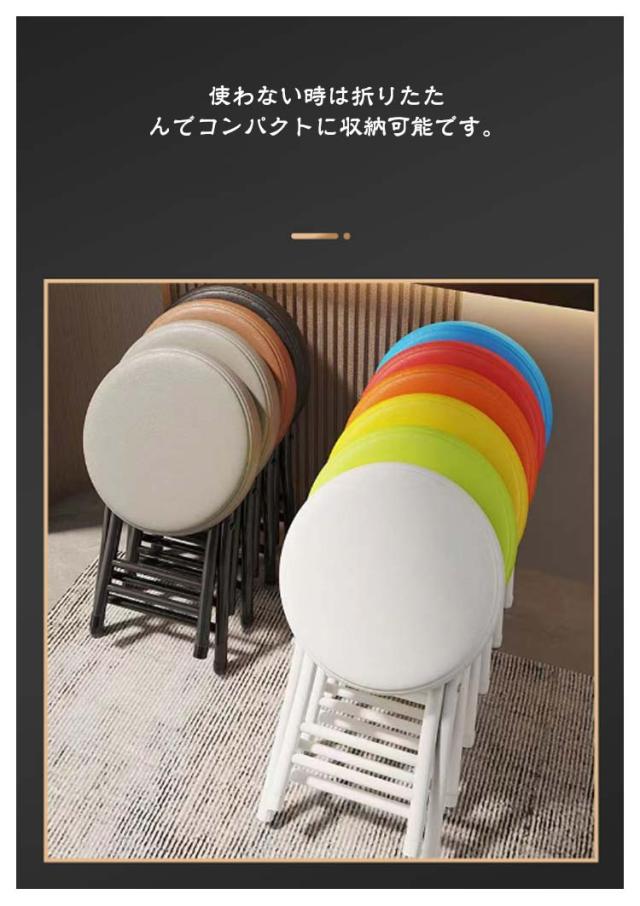 | 【折りたたみ】【クッション】【PU レザー】【12color】 必要なときにサッと出して座れる便利な折りたたみスツール。 クッションが厚めで座り心地抜群!長時間座っていても疲れにくくへたりにくい! 使わない時は折りたたんでコンパクトに収納可能です。 座面の生地は、PUレザー生地でお手入れ簡単です。 脚部は滑り止めカバー付ですので、傷・音・ガタつきを防ぎます。 | |