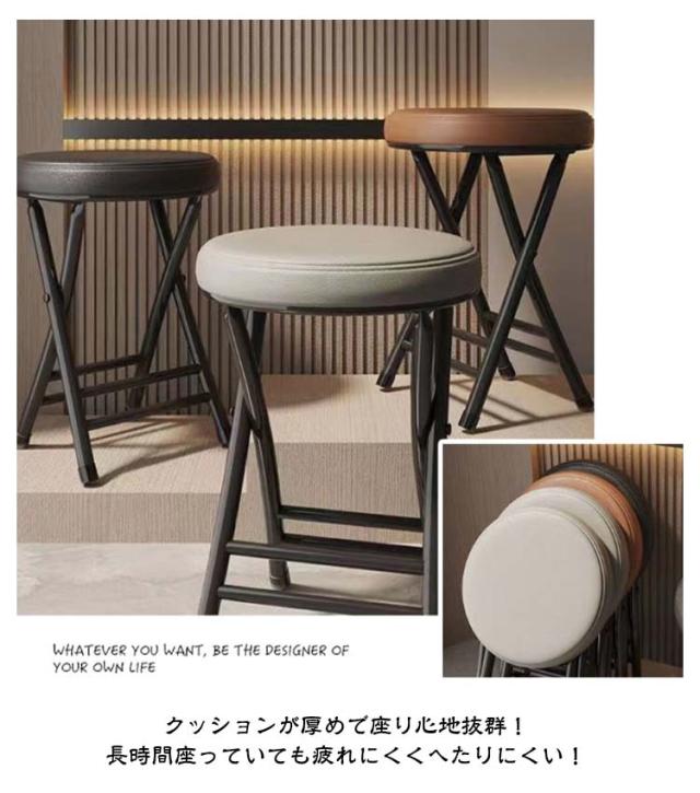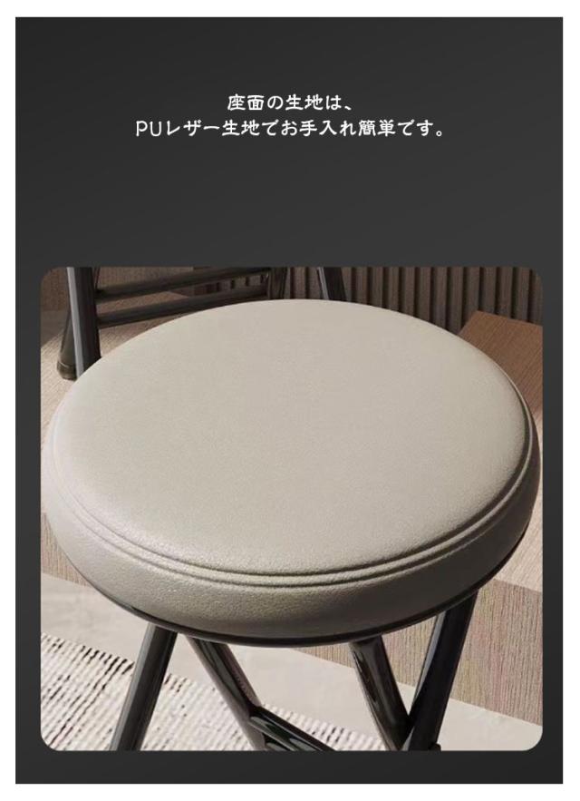【クッション付き】スツール 折りたたみ椅子 チェア クッションチェアー 丸 スツール 丸イス 折り畳み いす コンパクト スリム おしゃれ 北欧 丸椅子 PUレザー 座面 新生活 シンプル かわいい