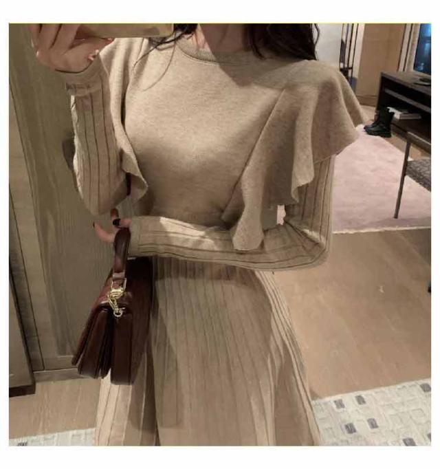 | フリル袖のニットプリーツワンピース! ウェストの切り替えから広がり、Aラインでフレアシルエット。 様々なシーンでも大活躍、万能なニットワンピース。 上手に体型カバーでき、おしゃれに見えて、楽ちんな着心地。 優雅なロング丈、綺麗めシルエながらも気になる体型をすっぼりカバーしてくれます。 上品なデザインでリラックスした雰囲気で着用して頂けます。 | |