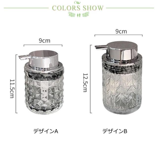 | 【ホテルライクなデザイン】 高級ホテルをイメージしたおしゃれなガラス製デザイン!原液の色によって雰囲気が変わるので自分好みのカラーを探せます! 【使いやすいポンプヘッド】 幅広のポンプヘッドで押しやすく滑らかな押し心地です。 【大きい開け口】 口径が大きいので洗いやすく、補充も簡単です。 【各種類洗剤対応】 洗剤ボトルは市販の一般洗剤が対応できます。泡ソープは直接ボトルに入れて使用できます。シャンプーや食器用洗剤、洗顔料など粘度の高い液体洗剤の場合は、先に純水で3-8倍に薄めれば泡も立てられます。 【容量】※200ml/220mlの容量がありますが、満タンにすると溢れ出たりポンプが動作しにくくなる場合がございますので、容器の60〜80%程度を目安に液を補充してください。 | |