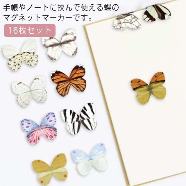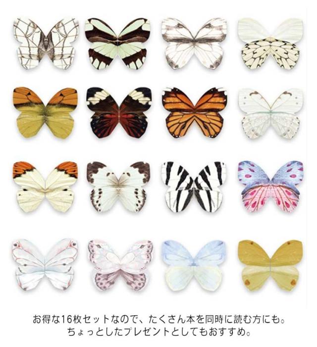 蝶のブックマーク しおり ブックマーク マグネット 16種セット 本にとまってるみたい! ちょうちょ 蝶 立体 3D カラフル メッセージ カード マグネットマーカー しおり 栞 磁石 マグネット
