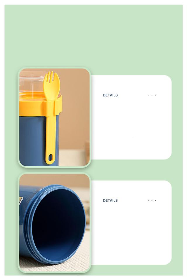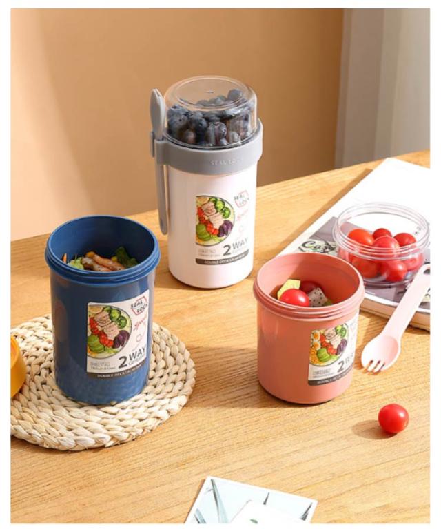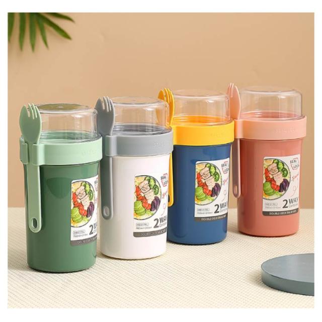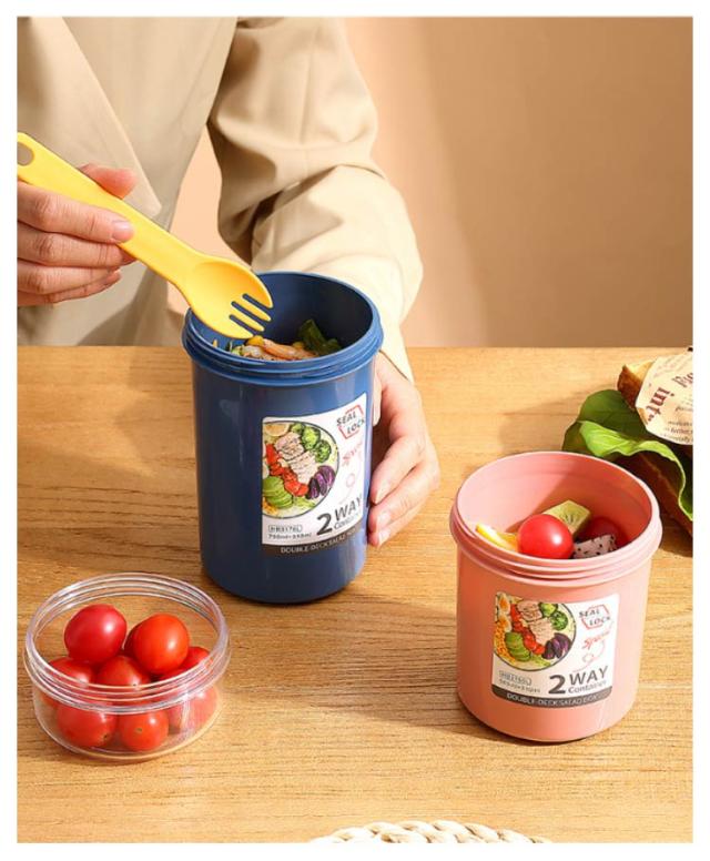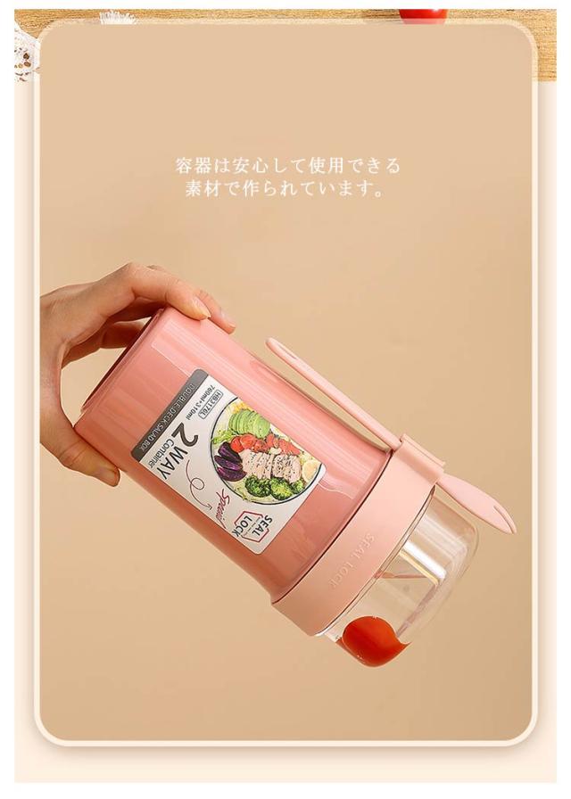 | 容器はボトル型で、持ち運びに非常に便利です。サラダ、フルーツ、スナック、牛乳などに使用できます。 ソースカップとフォークが付属しています。 容器の上部にはドレッシングを入れるカップが付いています。 容器は安心して使用できる素材で作られています。 フタを閉めると、シェイクしてドレッシングを混ぜることができます。 容器はお弁当袋に入れやすいサイズです。 ピクニックや外出先での使用に最適です。 便利でスタイリッシュなデザインです。 手で持ちやすい形状です。 お弁当箱としても使用できます。 カバンに入れて持ち運ぶことができます。 容器のサイズはコンパクトで、場所を取りません。 | |