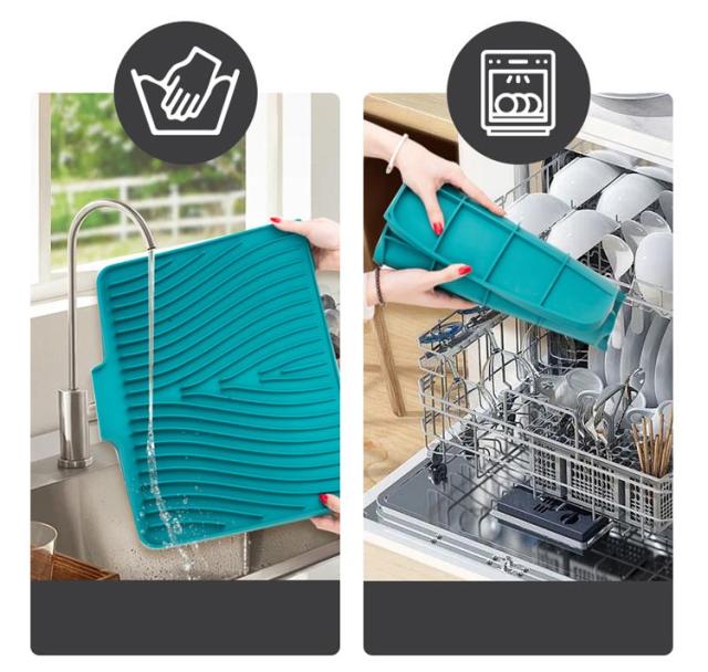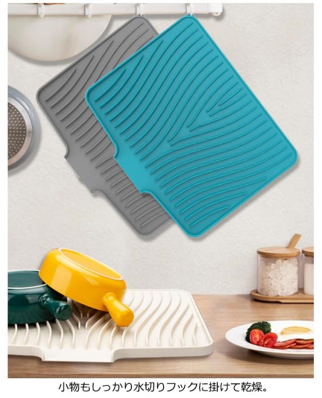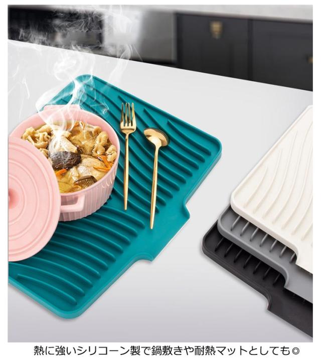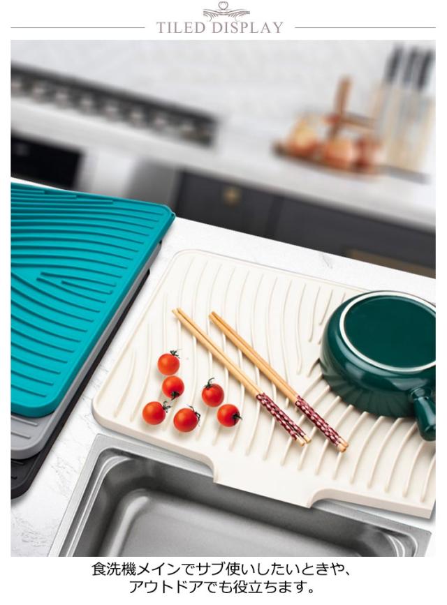 水切りマット 食器 水切り 折りたたみ シリコンマット 食品級シリコン 40×33×1.5cm ドライングマット 鍋敷き キッチン アウトドア 北欧 おしゃれ ブラック グレー ベージュ グリーン 送料無料