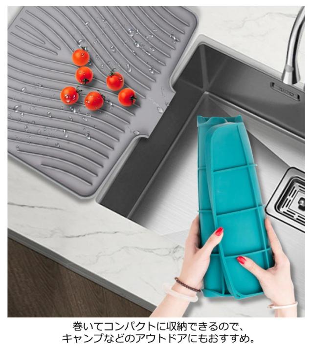 | 高さ1.5cm 使わないときはコンパクトに収納できる水切りマット 小物もしっかり水切りフックに掛けて乾燥 熱に強いシリコーン製で鍋敷きや耐熱マットとしても◎ 食洗機メインでサブ使いしたいときや、アウトドアでも役立ちます。 巻いてコンパクトに収納できるので、キャンプなどのアウトドアにもおすすめ。 鍋敷きや耐熱マットとしても使用できます。 | |