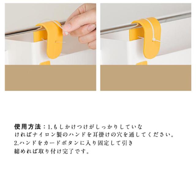 | 吊り下げ式のデザイン、釘なしのインストール。収納ボックス。ダブルフックが落ちにくい、幅2.8cm以内のロッドに掛けることができます。 スペースを広げ、日常用品を取りやすくなります。 テーブルや化粧台の上に置け、部屋をもっときれいにすることができます。 側面と底に4つのフックがあり、バッグや洋服などを掛けることができます。 シンプルでスタイリッシュな外観、お部屋のインテリアに適しております。 コンピュータデスクの横に掛けるすことができ、仕事中にもより便利になります。 装着簡単、工具不要! ヘッドボードが付いている二段ベッドのための病院用ベッドの寮、ベビーベッド、ダブルベッ、 病院のベッドのレール、ベビーベッド、ベッドルーム、リビング、書斎、オフィスなどの場所でご使用頂けます。 使用方法:1.もしかけつけがしっかりしていな ければナイロン製のハンドを耳掛けの穴を通してください。 2.ハンドをカードボタンに入り固定して引き締めれば取り付け完了です。 | |