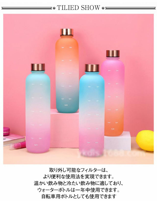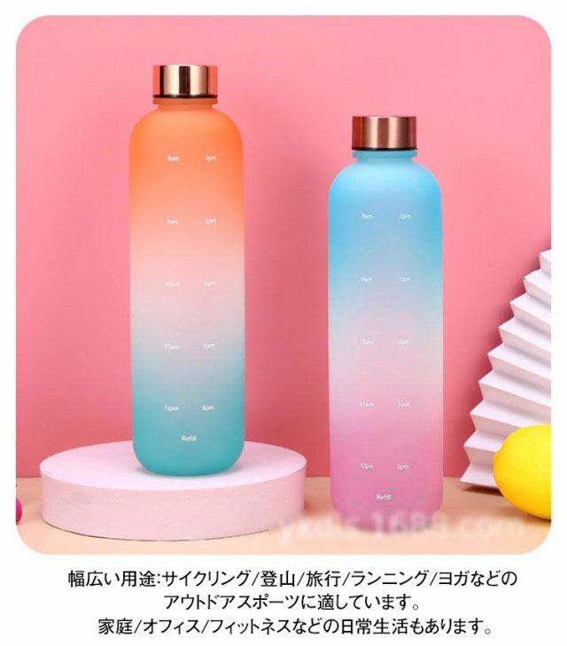 ウォーターボトル 水筒 1l 水筒1リットル ウォーター ボトル タイムマーカー かわいい 直飲み 女の子 目盛り おしゃれ 女子 子供 キッズ 可愛い プラスチック 洗いやすい 大人 大容量 軽量 ジム ヨガ