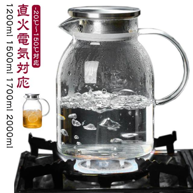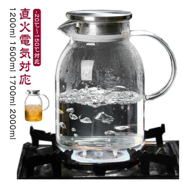 ガラスピッチャー 直火 1200ml 1500ml 1700ml 2000ml ガラスポット 直火 2リットル 直火 ガラスポット 電気ケトル 1.7 ガラスケトル 電気 ケトル 2 リットル 2l 1 リットル以上 ガラスケトル ティーポット 耐熱ガラス 冷水筒 冷水ポット 麦茶入れ 水だし 紅茶ポット