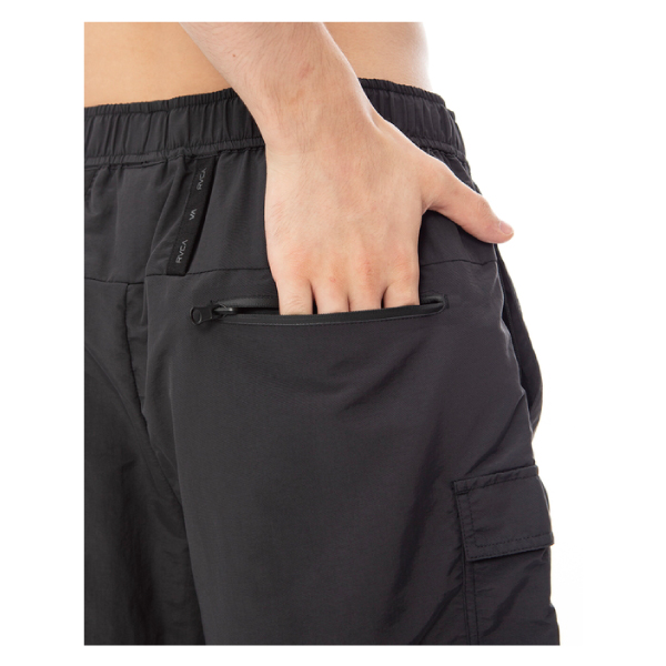 | | MMAや柔術、ボクシングなどの格闘技にルーツを持つRVCA SPORTのウォークパンツ。左右にフラップ付きのカーゴポケットを設け、右側のスラッシュポケット部分のみファスナーポケットを装備。ウエストはRVCAロゴ入りのナイロンベルトを内蔵し簡単にサイズ調節が可能です。また、ボディを小さく折り畳んでヒップポケットに収納できるパッカブル仕様です。 |