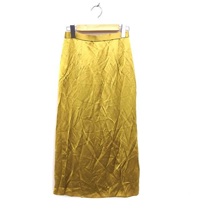 【中古】アーバンリサーチ URBAN RESEARCH スカート ナロー ロング マキシ丈 光沢 スリット バックジップ 38 イエロー