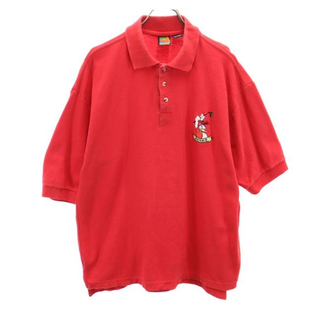 ミッキーアンリミテッド 90s オールド 刺繍 ドナルドダック 半袖 ポロシャツ XL レッド MICKEY UNLIMITED 鹿の子 メンズ