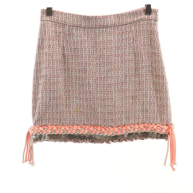 エムエスジーエム イタリア製 チェック柄 ミニ丈 ツイード 台形 スカート 40 ピンク系 MSGM レディース