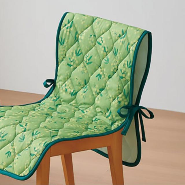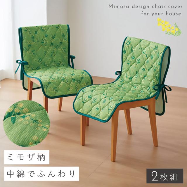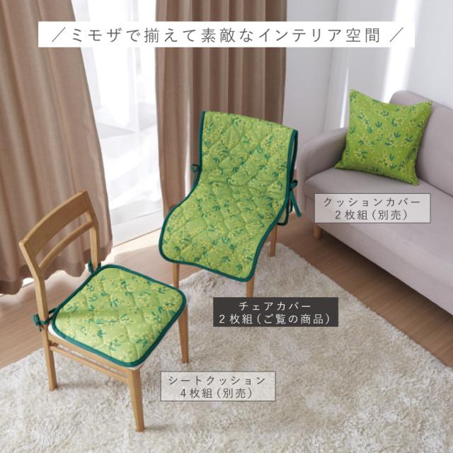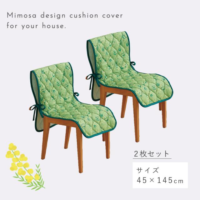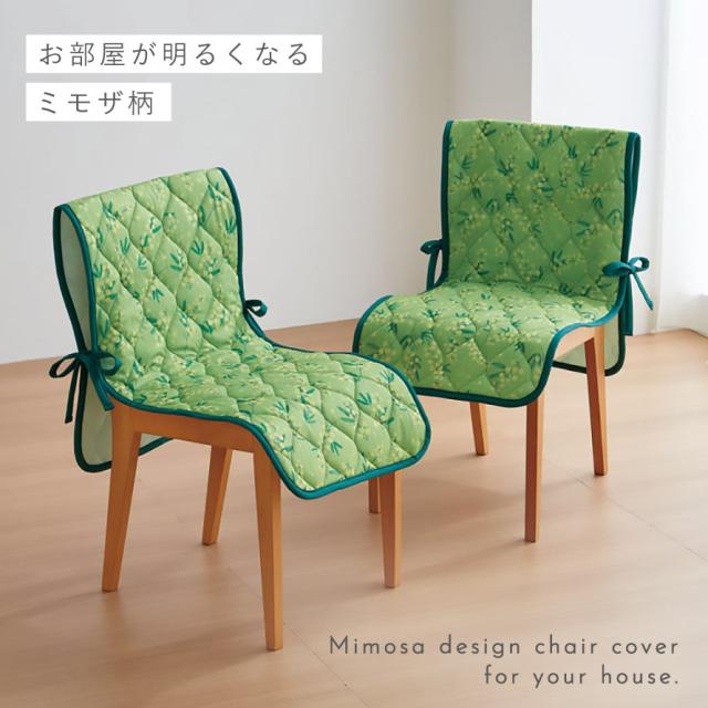 ふわふわ黄色い「ミモザ」の花をあしらったチェアカバー。お部屋の雰囲気が明るくなる、春を楽しめるデザイン。