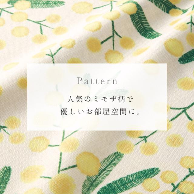 ふわふわ黄色い「ミモザ」の花をあしらった座布団カバー。お部屋の雰囲気が明るくなる、春を楽しめるデザイン。和室にも洋室にもマッチします。両面同柄になっています。