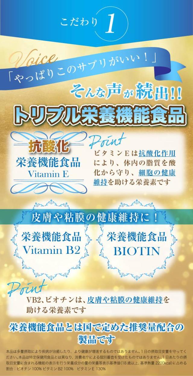 ・トリプル栄養機能食品(ビオチン・ビタミンB2・ビタミンE)