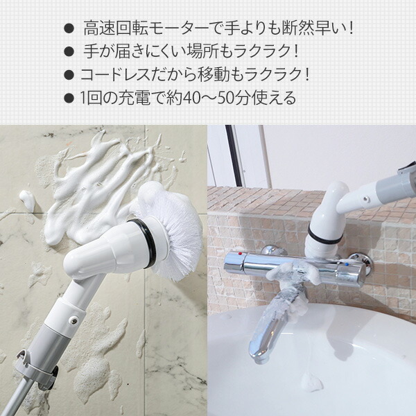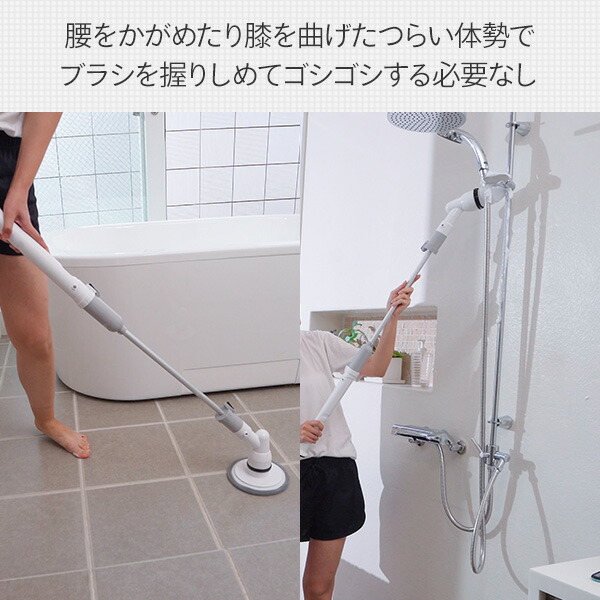| 商品説明 | ●浴槽の湯垢やタイルの汚れを「手軽にキレイにお掃除できる」バスポリッシャー ●腰をかがめたり膝を曲げたつらい体勢でブラシをゴシゴシする必要はありません ●充電式 ●充電時間:約5.5時間 ●連続使用時間:約40〜50分 ●電池:リチウムイオン電池 2000mAh 3.7V ●回転数:約300/分 ●入力電圧:AC100V ●充電電圧:5V ●充電電流:〜0.8A(MAX) ●パワー:10W ●防水:IPX5(生活防水) ●ブラシ4種類付属 【スポンジブラシ】浴槽 【デッキブラシ】床、壁、天井 【コーナーブラシ】蛇口周り、角 【多目的ブラシ】さまざまな場所に |