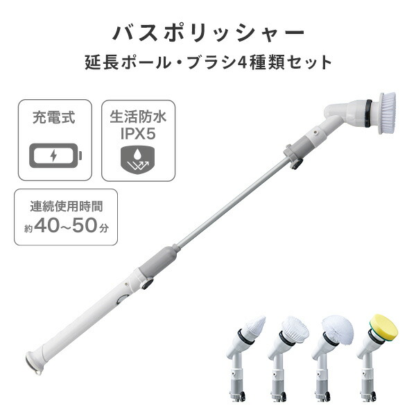 バスポリッシャー 充電式 防水IPX5 ブラシ4種類付属 YBP-C01(WH) ホワイト お風呂掃除ブラシ 電動ブラシ スティックブラシ お風呂スポンジ バスクリーナー お掃除ブラシ 回転ブラシ 浴槽 天井 床 壁 山善 YAMAZEN 【送料無料】