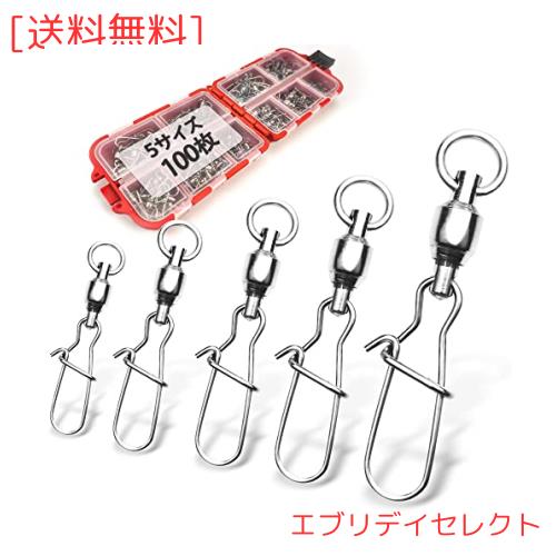 【超お得100個入 複数サイズ そして実用的なルアー収納ボックス】スイベルは#0、#1、#2、#3、#4 五つのサイズがあるので、各サイズ20枚ずつ,様々な釣法や魚種に対応できます。小さいサイズはバス釣りのような淡水に最適です。大きいサイズは大物釣りに適しています。赤いルアボックスに収納されています。