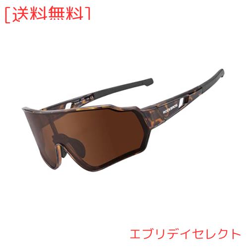 ロックブロス 偏光サングラス 釣り 調光サングラス スポーツサングラス 軽量 UV400 自転車 ゴルフ 登山 ピクニック 防風 メンズ(茶色)
