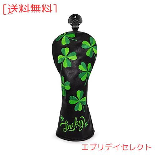 ゴルフヘッドカバー ラッキークローバー仕様 ゴルフウッドカバーセットブラックゴルフドライバーカバー フェアウェイウッド、ユーティリ