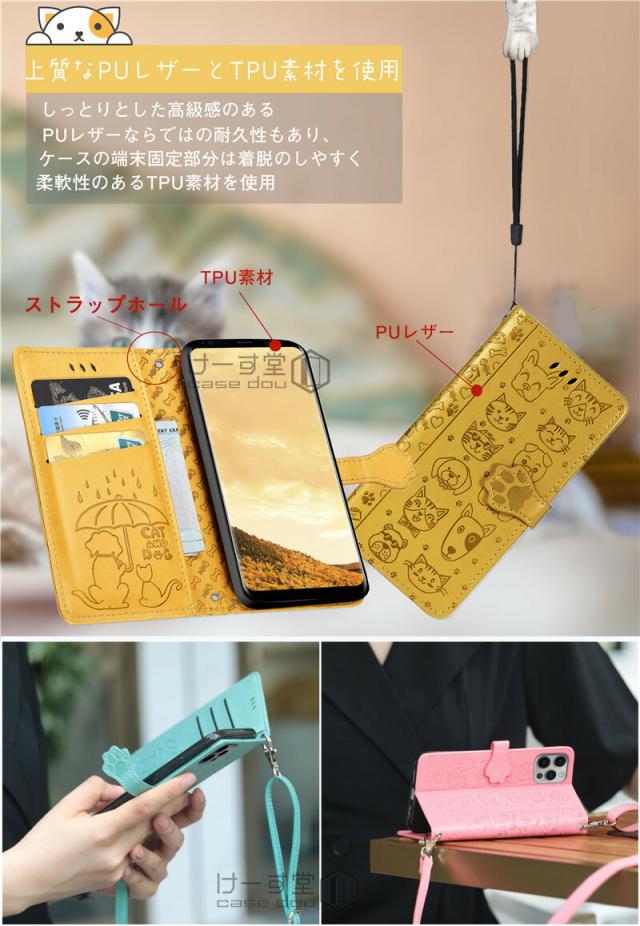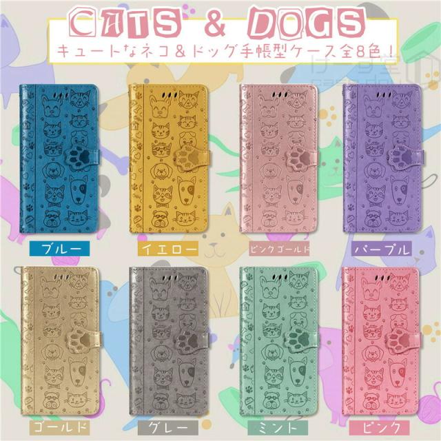 キュートなネコ&イヌ絵柄手帳型ケース全8色!。