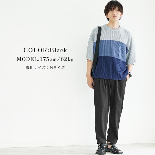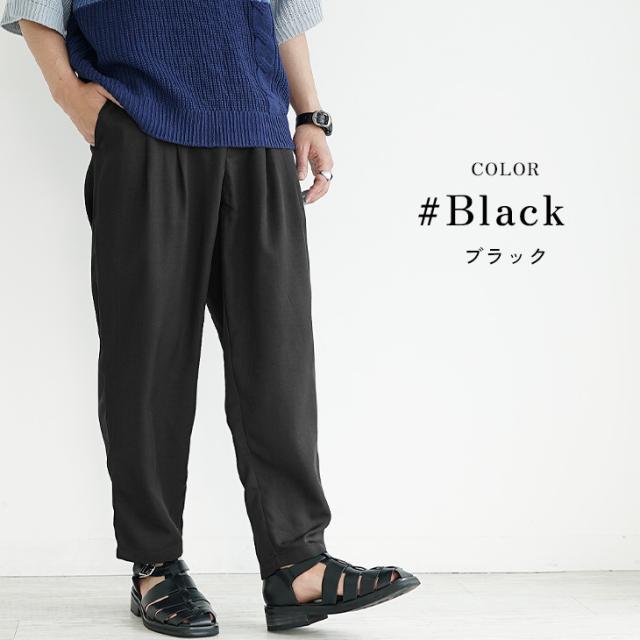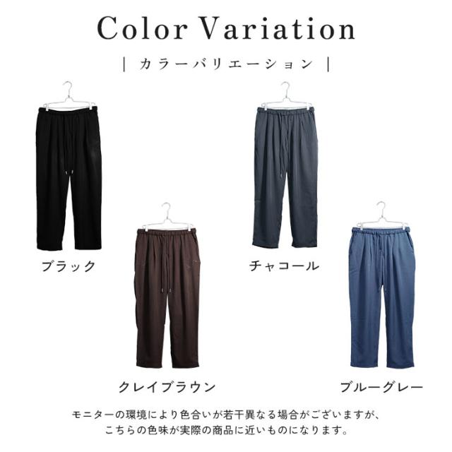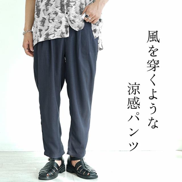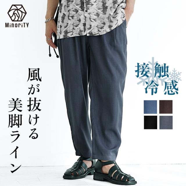 接触冷感 パンツ メンズ テーパードパンツ 冷感パンツ メンズ ワイドパンツ メンズ 冷感 アンクルパンツ テーパード スラックス フェイク リネン 黒 グレー ブラウン ブルー ずぼん ズボン ゆったり ウエストゴム 夏 夏服 夏物 メンズファッション マイノリティ minority