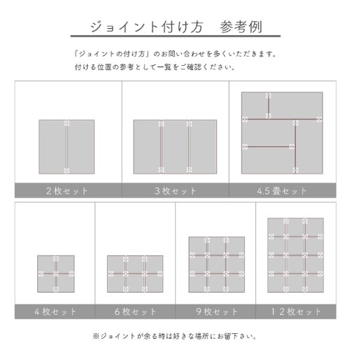 | 組成 | 表地=い草 ※双目織 中材=ヒバ硬綿15mm 裏地=連結用ジョイント付 ヘリ=PP、PE |