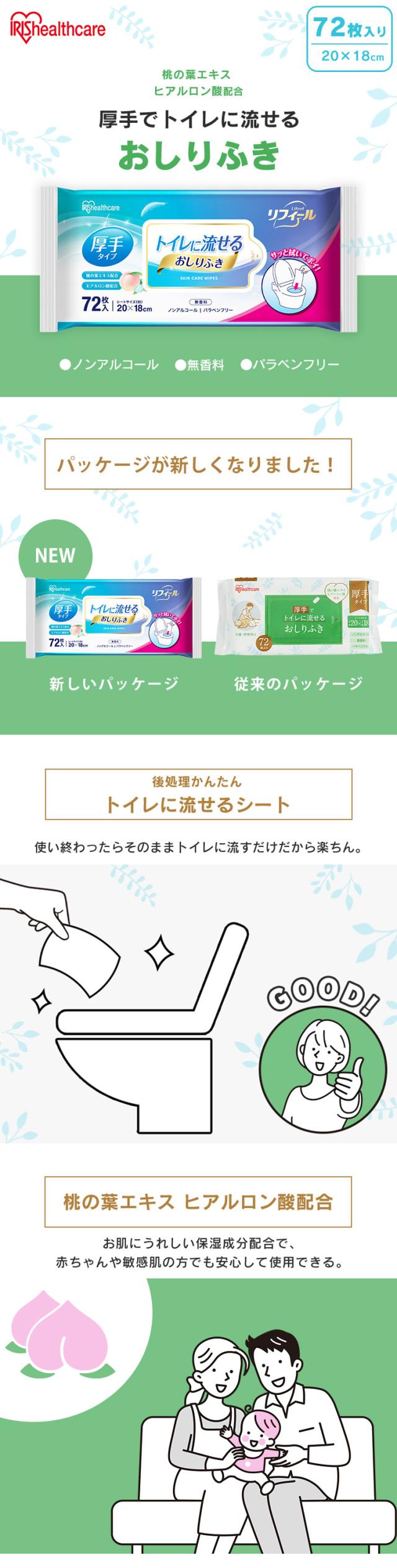 おしりふき 厚手 トイレに流せる おしり拭き 72枚×4個 流せるおしりふき 介護 大人用 介護用 お尻拭き 大人 赤ちゃん 子供 ウェットティッシュ ノンアルコール 無香料 保湿成分配合 ウエットティッシュ 介護用品 防災 アイリスオーヤマ OSR-72 *