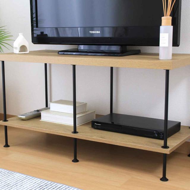 木目風の天板にブラックのスチールがマッチしたシンプルなテレビ台です。ローボードタイプのオープン収納で圧迫感を軽減し、お部屋を広く見せることができます。テレビ台だけでなく、ディスプレイラックとしてもお使いいただけます。