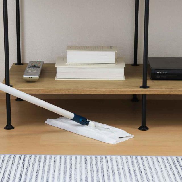 棚下は12cmの脚付きで空間にゆとりがあるため、お掃除がしやすくなっています。一般的なロボット掃除機も対応しています。