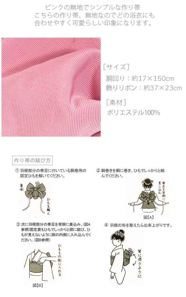 浴衣帯 作り帯 つくりおび 浴衣 帯 付帯 結び帯 レディース 女性 浴衣帯 大人 ピンク かわいい レトロ 簡単 5166