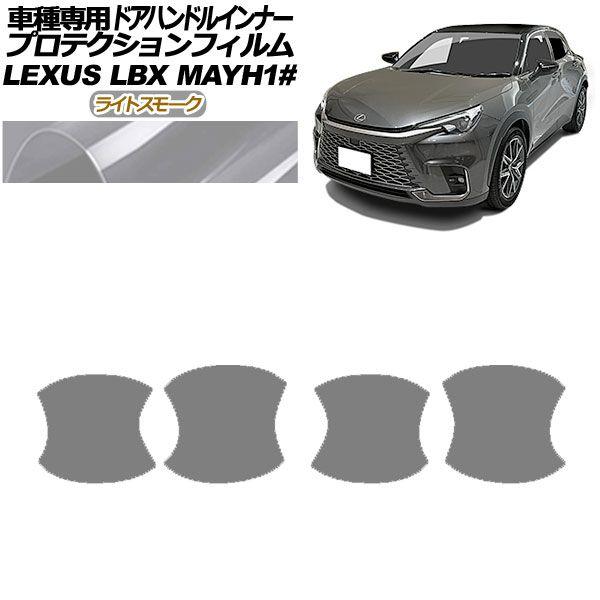 プロテクションフィルム ドアハンドルインナー レクサス LBX MAYH10,MAYH15 2023年12月〜 ライトスモーク 入数:1セット(4枚) AP-PF0152-LSM01 カット済み カットフィルム カット 車種専用 専用カット プロテクション プロテクションシート プロテクションカバー プロテクトフィルム プロテクトシート プロテクトカバー カーフィルム カーフイルム フィルム フイルム 保護フィルム 保護シート 保護シール ラップフィルム ラップシート PPF PF ドアノブ ドア サイドドア ドアハンドル ハンドル 取っ手 皿 ボウル カップ くぼみ スモーク smoke グレー gray キズ防止 キズ 傷 黄ばみ 変色 くすみ 防止 保護 ガード シート カバー